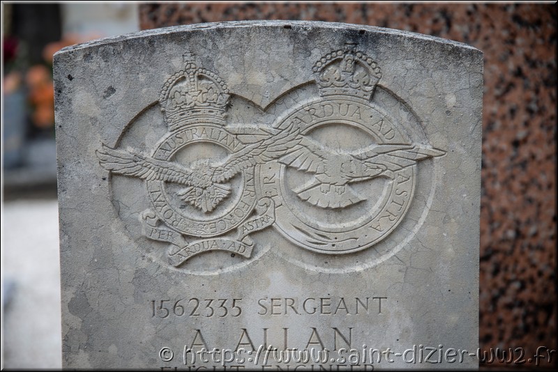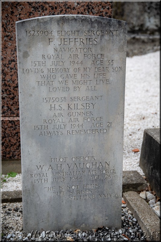 Les membres de l'équipage sont: L'officier pilote William Alan Henry Vaughan le pilote de la RAF tué. Sergent Alexander Allan le mécanicien de la RAF tué. Sergent Kevin Leslie Thomas Dickerson le bombardier de la RAAF tué. Sergent Frederick Jeffries le navigateur de la RAF tué. Sergent Horace Sidney Kilsby le mitrailleur de la RAF tué. Sergent Brian Francis le radio de la RAAf évadé. Sergent David Wade le Mitrailleur de la RAF évadé.