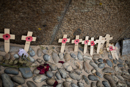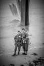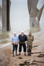 Comme chaque année, la plage de Saint Laurent sur mer sonne les retrouvailles à l'image des femmes dans un souvenir de mémoire des nurses. Soleil absent ce jour de recueillement avant un lancé de fleurs à la mer.