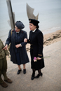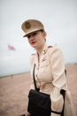 Comme chaque année, la plage de Saint Laurent sur mer sonne les retrouvailles à l'image des femmes dans un souvenir de mémoire des nurses. Soleil absent ce jour de recueillement avant un lancé de fleurs à la mer.