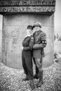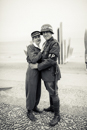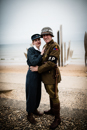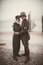 Comme chaque année, la plage de Saint Laurent sur mer sonne les retrouvailles à l'image des femmes dans un souvenir de mémoire des nurses. Soleil absent ce jour de recueillement avant un lancé de fleurs à la mer.